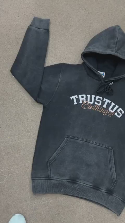 StoneWashed Hoodie. Embroidered with the TrustUsClothingCo. ‘Timeless Elegance’ Logo